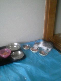 ひょっとしたらそろそろ離乳じゃなかったっけ?とばぢの赤ちゃんたちの事を思い出して、にゃにゃこにあげていたものを少し分けて与えてみたら・・・器の中に入ってむしゃむしゃ食べ始めました(笑)